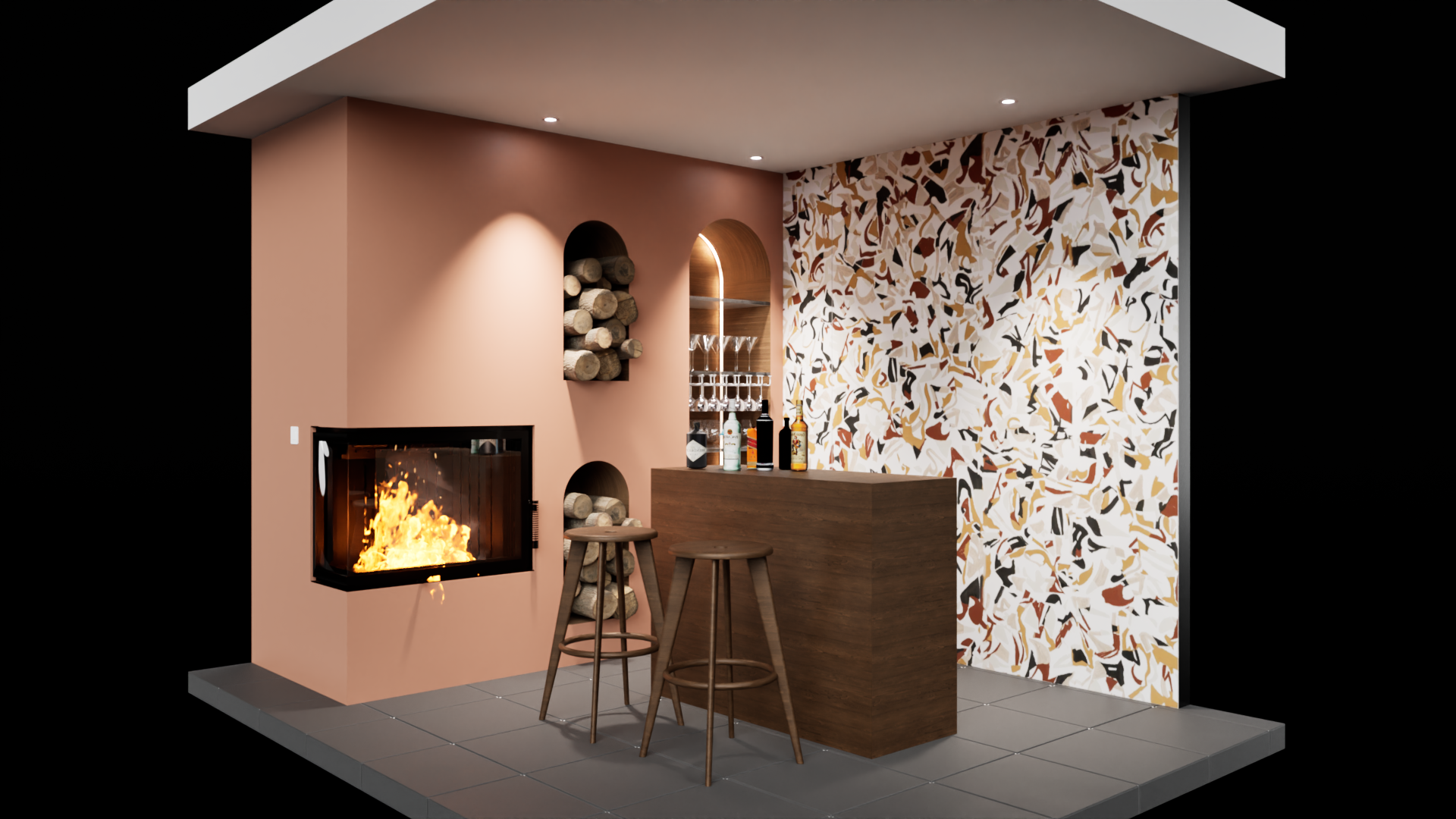 Espace Bar avec cheminée