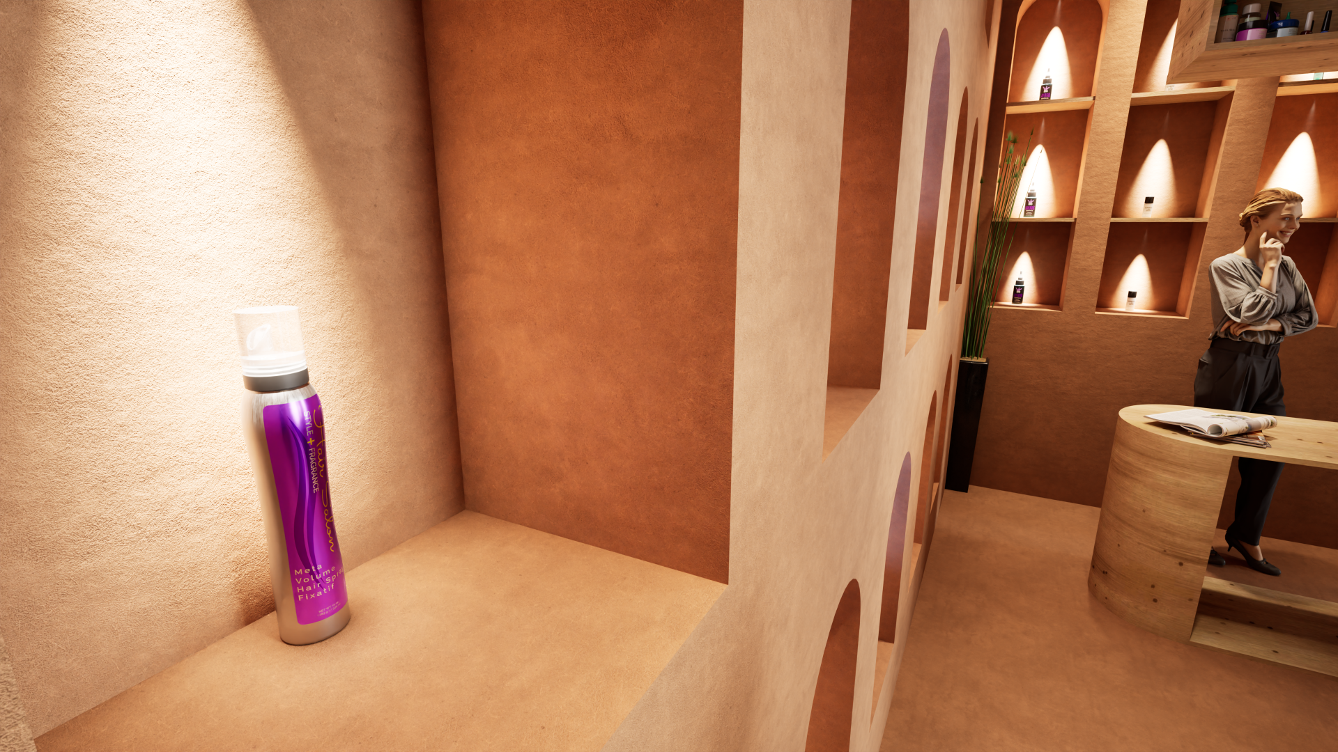 Les formes courbes s’opposent volontairement à la rugosité des matières. Elles adoucissent, rassurent, et portent visuellement les valeurs de douceur, de bienveillance et de prestige propres à la marque.